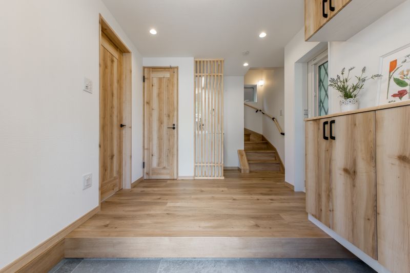 1階玄関ホール横には洗面化粧台とトイレを備えています。